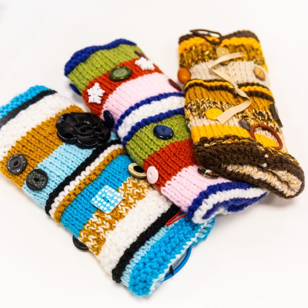 A twiddlemuff is a cozy knitted hand muff with various textures and objects inside. They are great for providing stimulation for people with dementia who have restless hands.